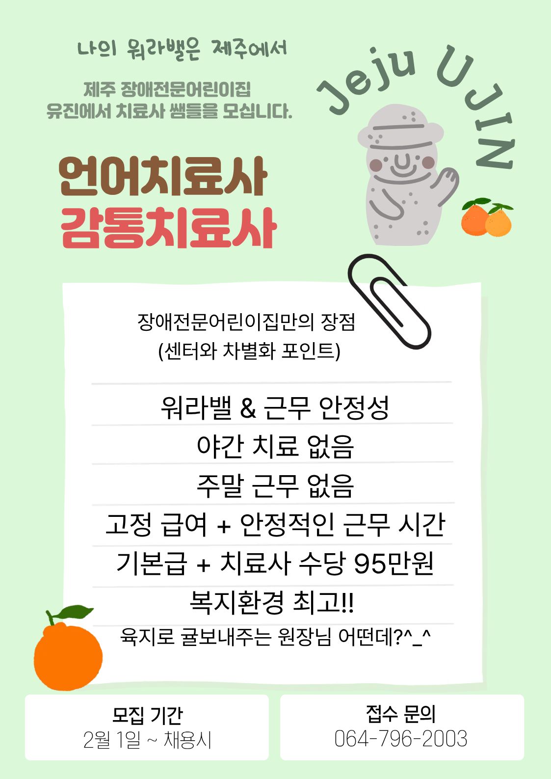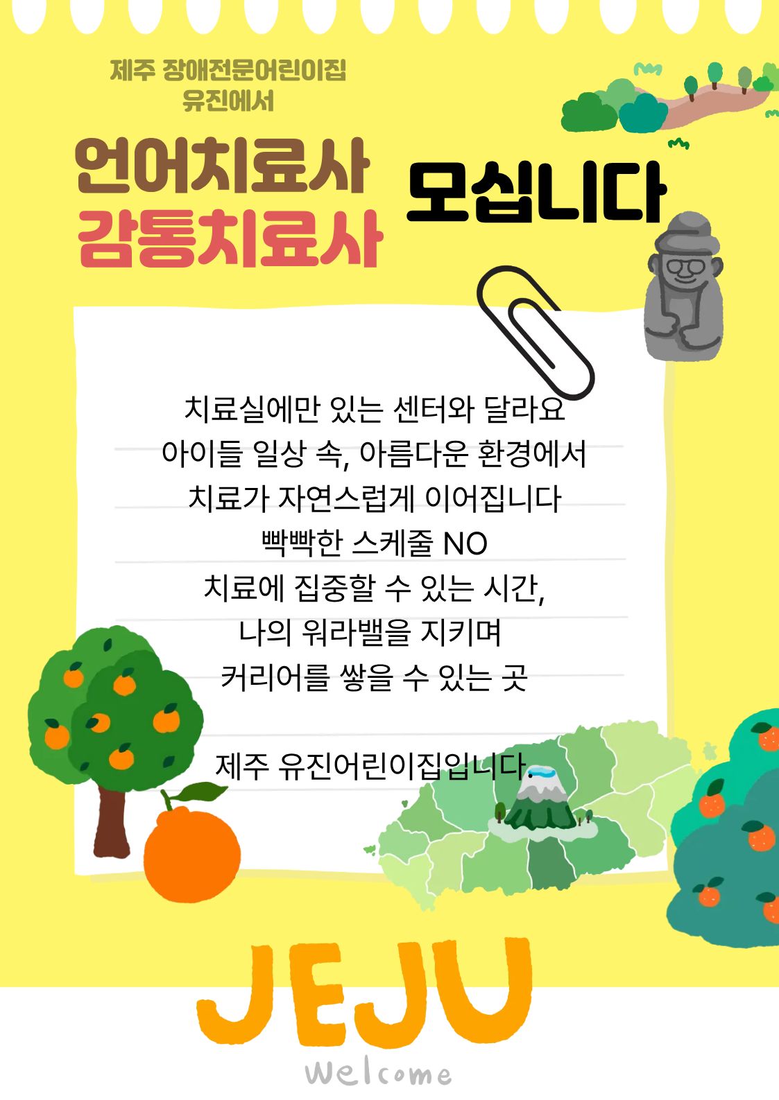 [제주] 유진어린이집 언어치료사 채용 공고