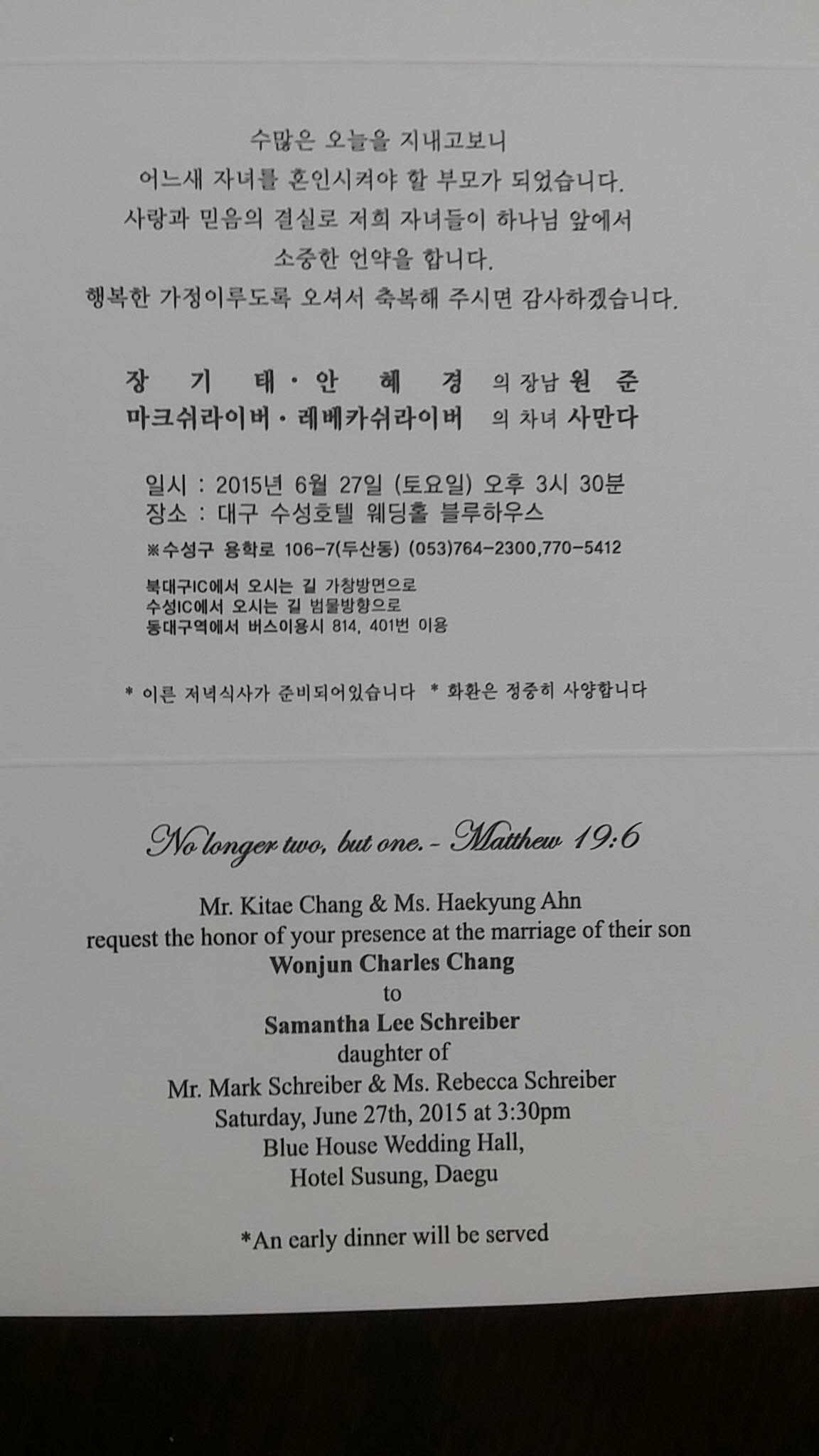 우리학회 종신회원이신 금오공과대학교 장기태 교수님의 자녀 결혼을 알려드립니다.