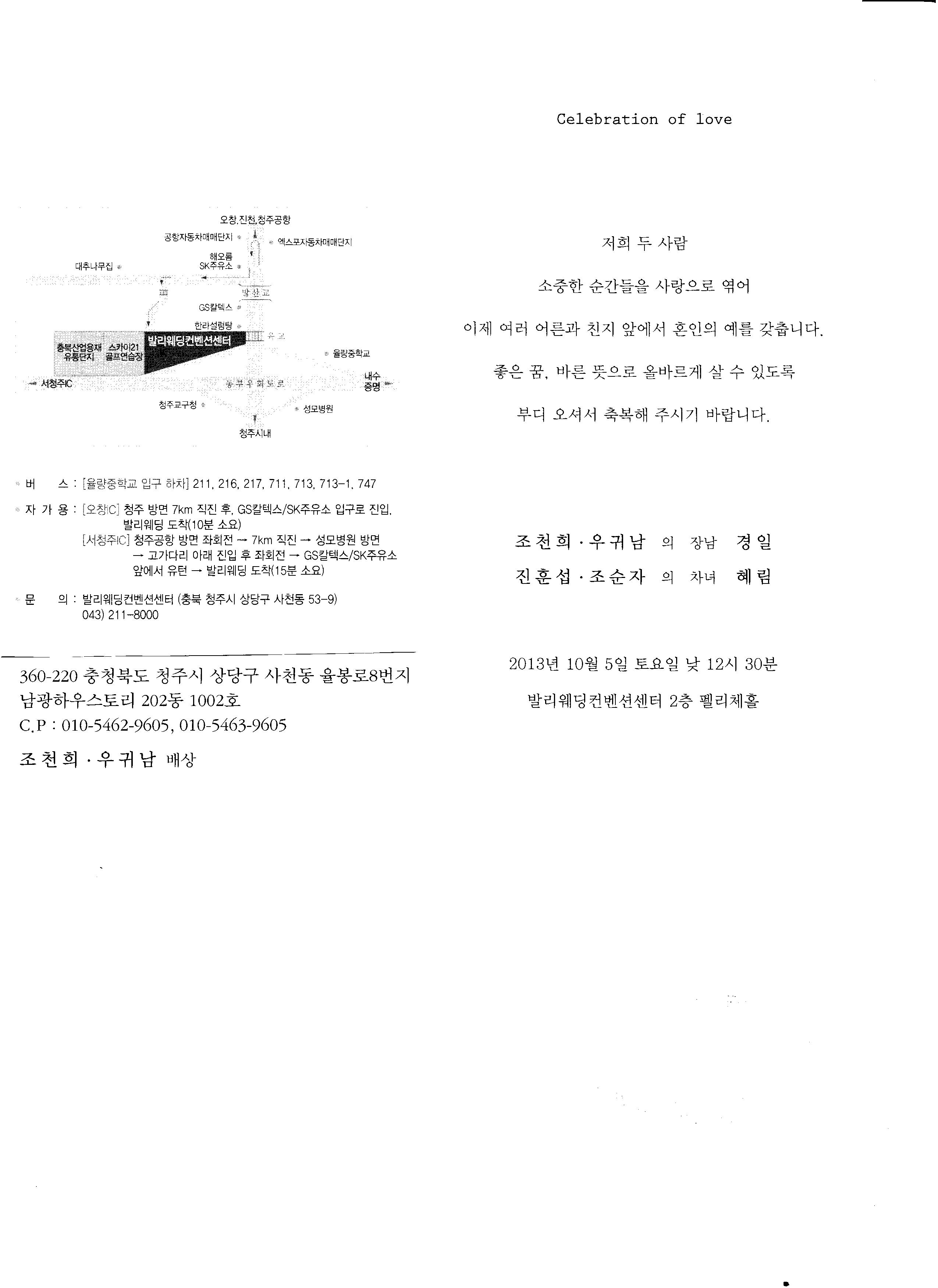 * 장소 : 발리웨딩컨벤션센터 2층 펠리체홀(충북 청주시 상당구 사천동 53-9)