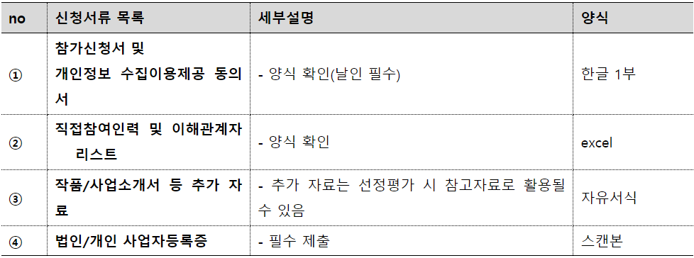 신청서류 목록