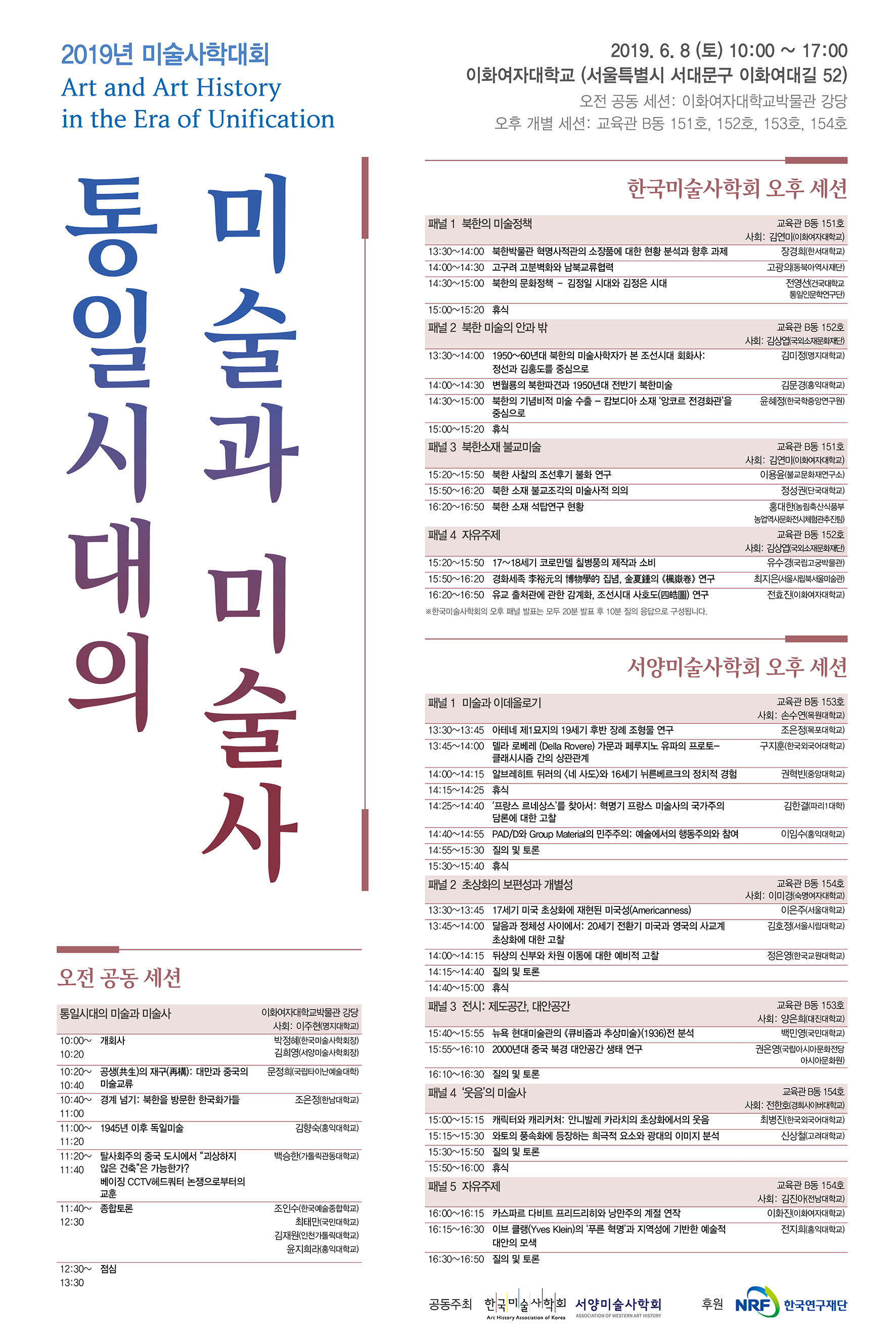 서양미술사학회와 한국미술사학회가 공동주최하는 제5회 미술사학대회가 6월 8일(토)