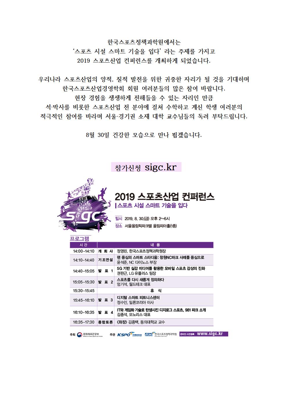 2019 스포츠산업 컨퍼런스 개최 안내