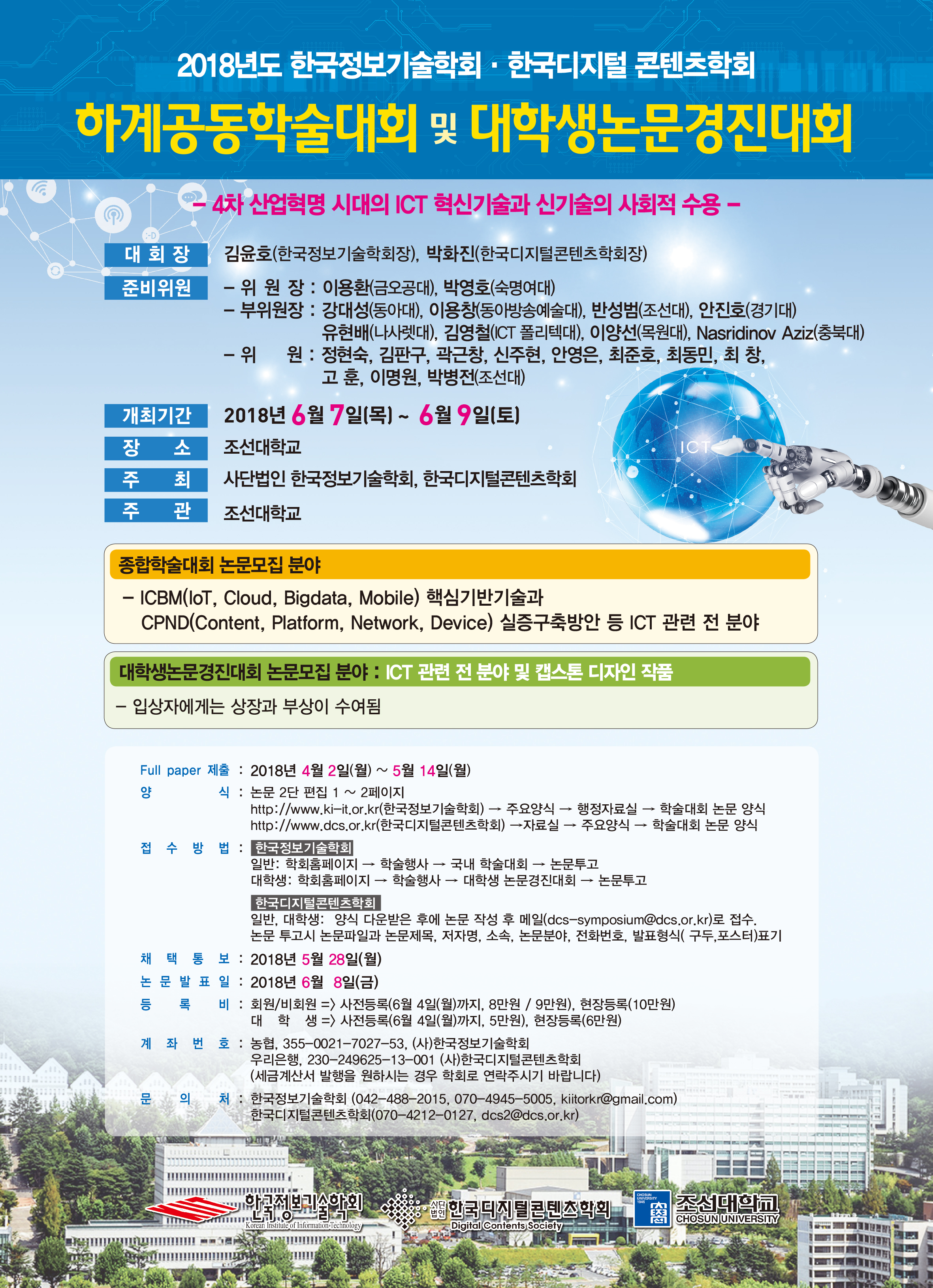 <2018년도 한국정보기술학회, 한국디지턴콘텐츠학회 하계공동학술대회 및 대학생논문경진대회 안내>