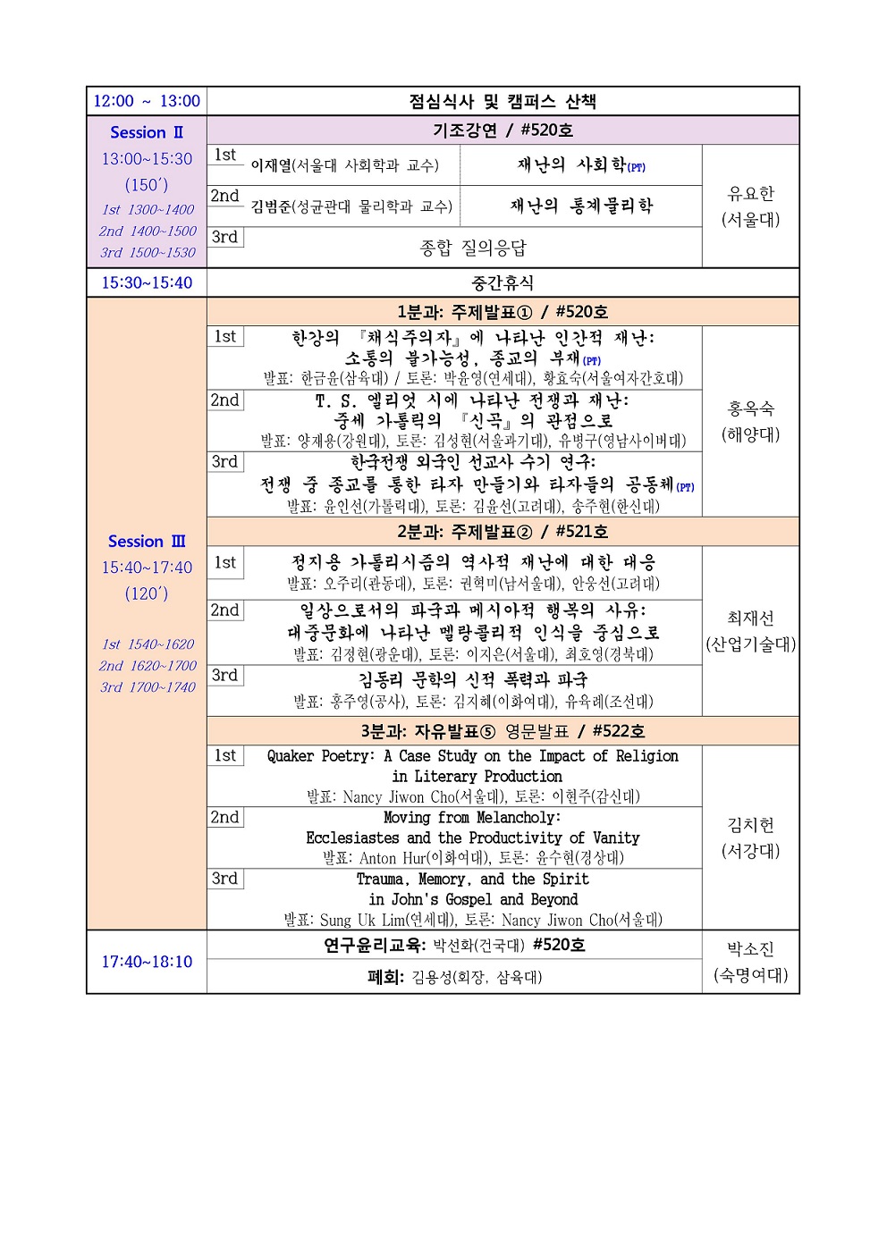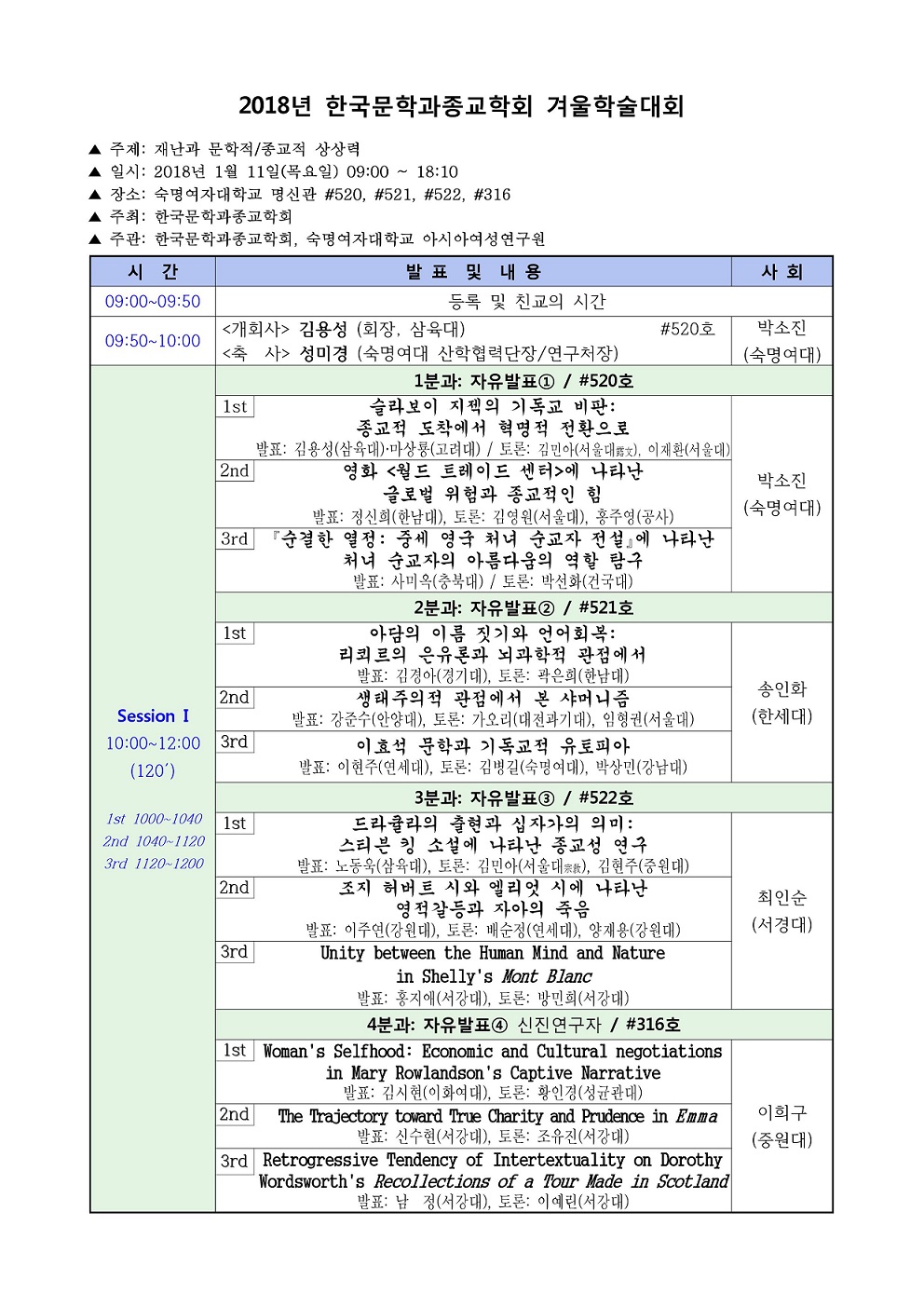 ■ 장   소_ 숙명여자대학교 명신관 (520호, 521호, 522호, 316호)
