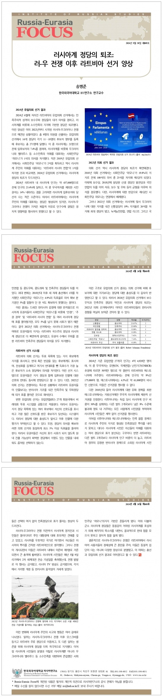 제809호 러시아계 정당의 퇴조: 러-우 전쟁 이후 라트비아 선거 양상