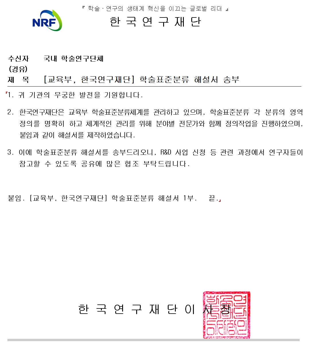 [한국연구재단] 2024년도 학술표준분류체계 해설서 배포 안내