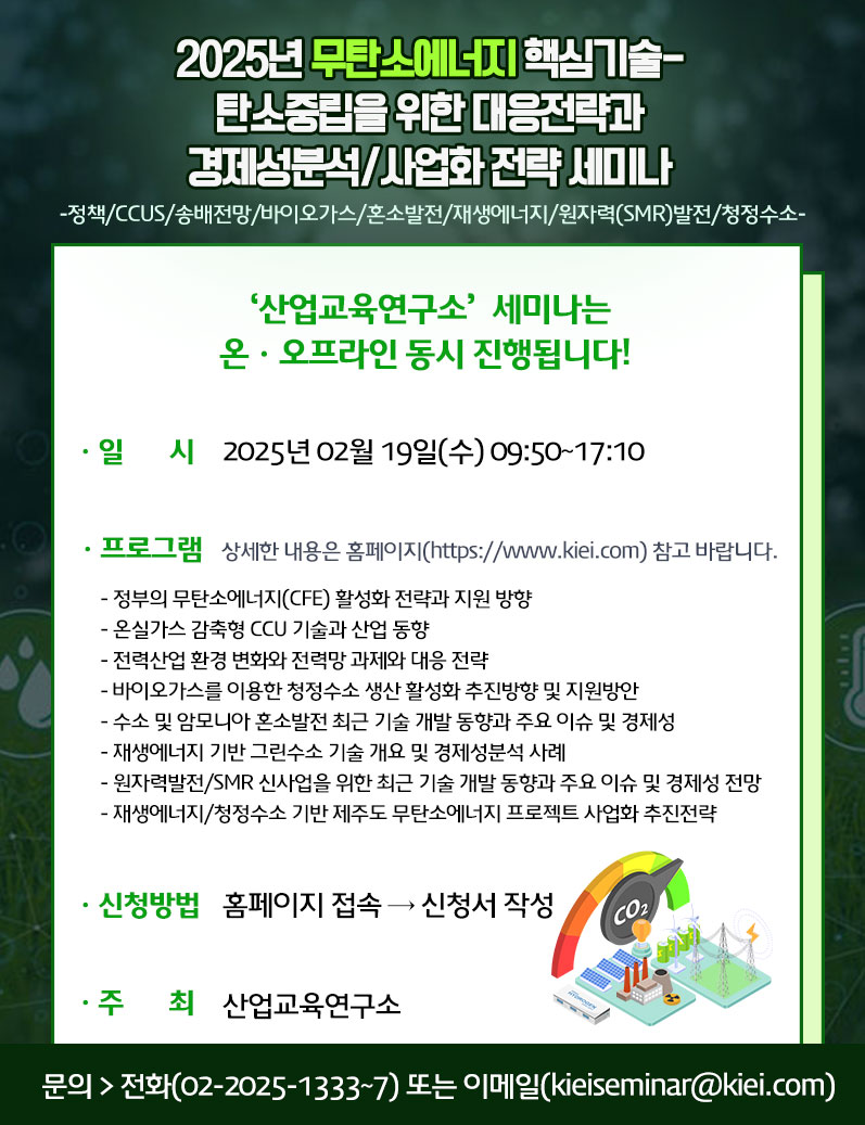 [산업교육연구소] 2025년 무탄소에너지 핵심기술- 탄소중립을 위한 대응전략과 경제성분석/사업화 전략 세미나
