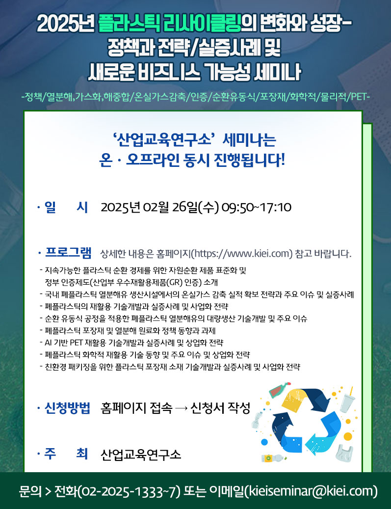[산업교육연구소] 2025년 플라스틱 리사이클링의 변화와 성장 정책과 전략/실증사례 및 새로운 비즈니스 가능성 세미나