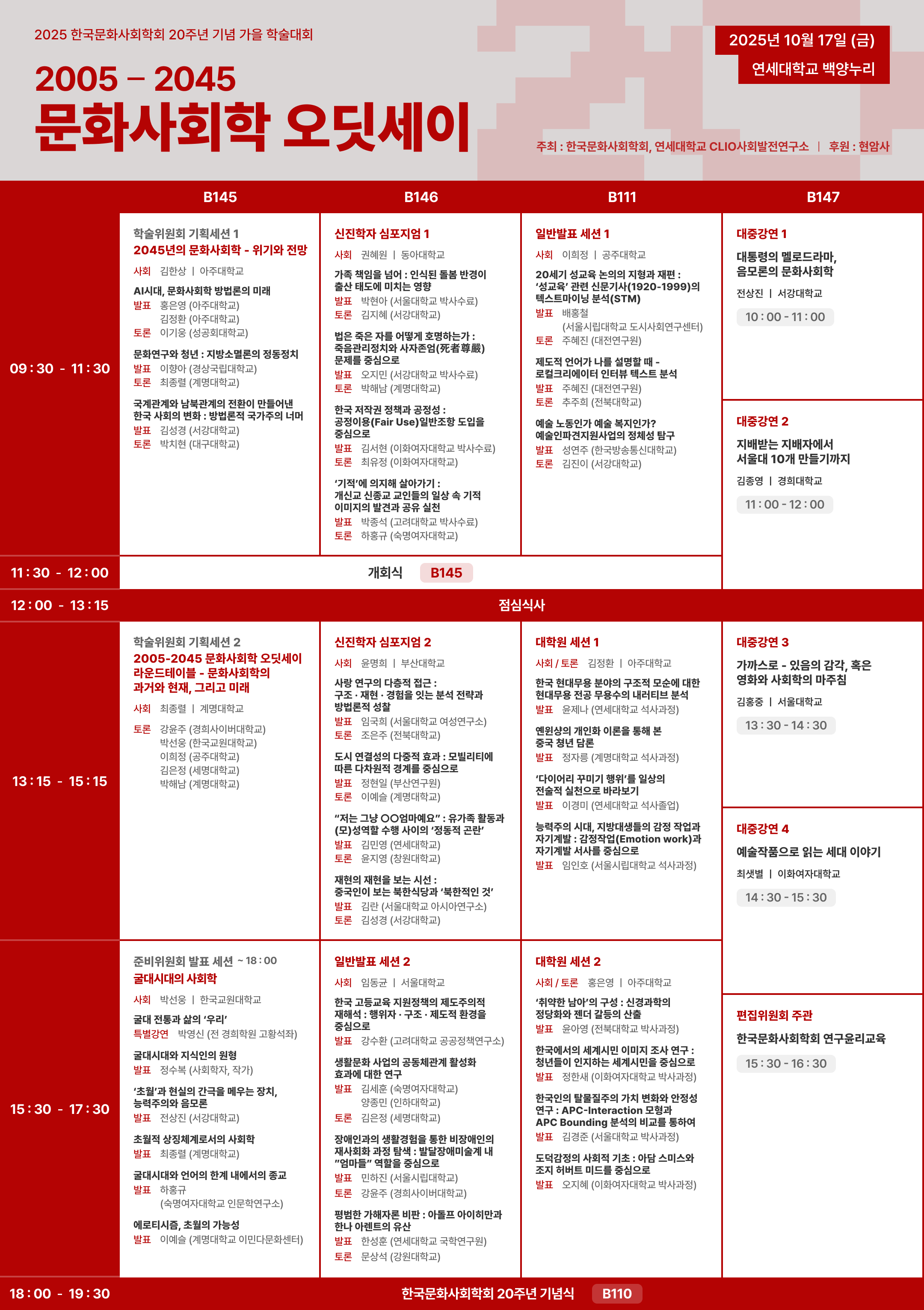 - 공동주최: 한국문화사회학회, 연세대학교 CLIO 사회발전연구소