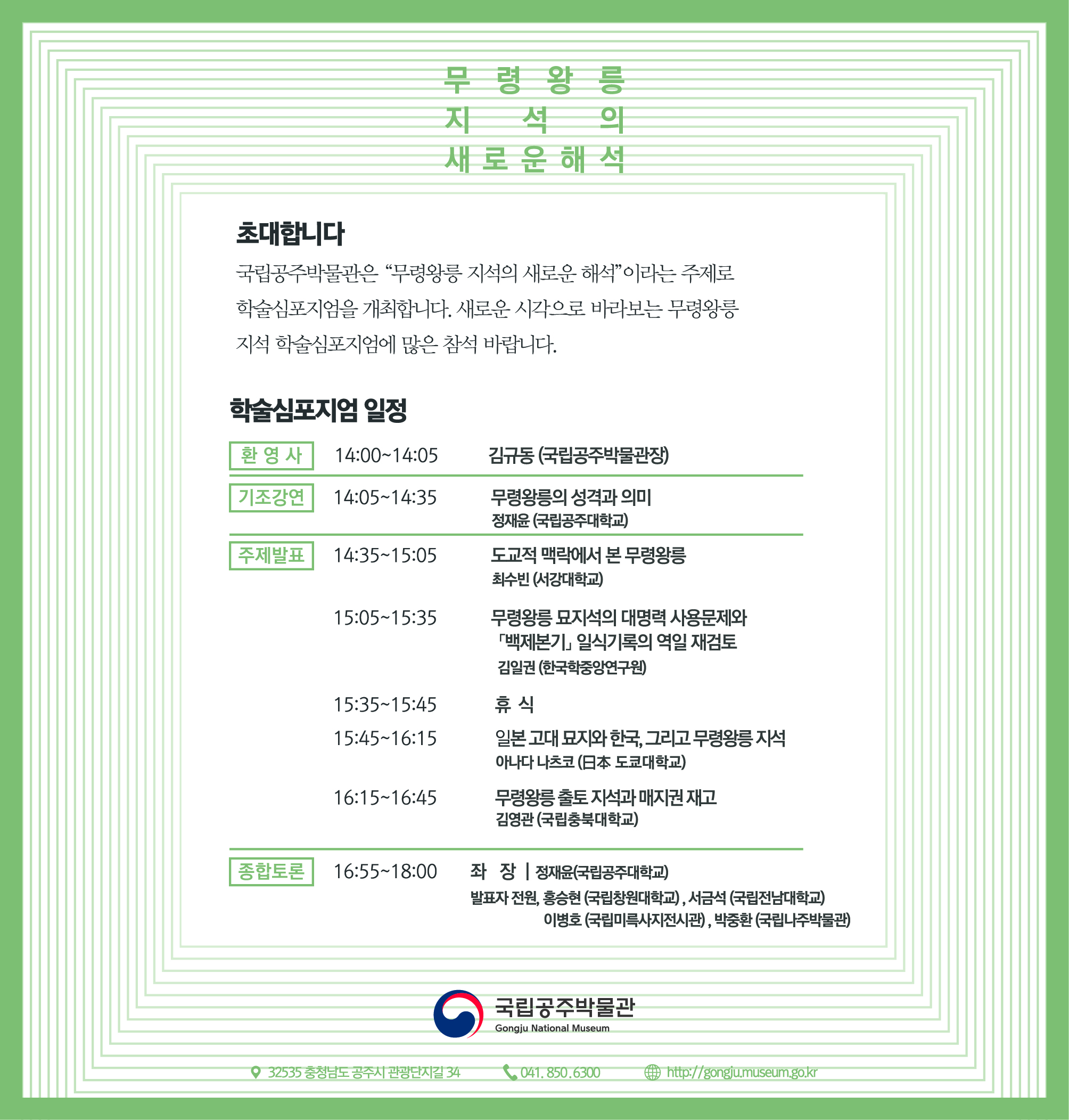 국립공주박물관 학술심포지엄 무령왕릉 지석의 새로운 해석 ""