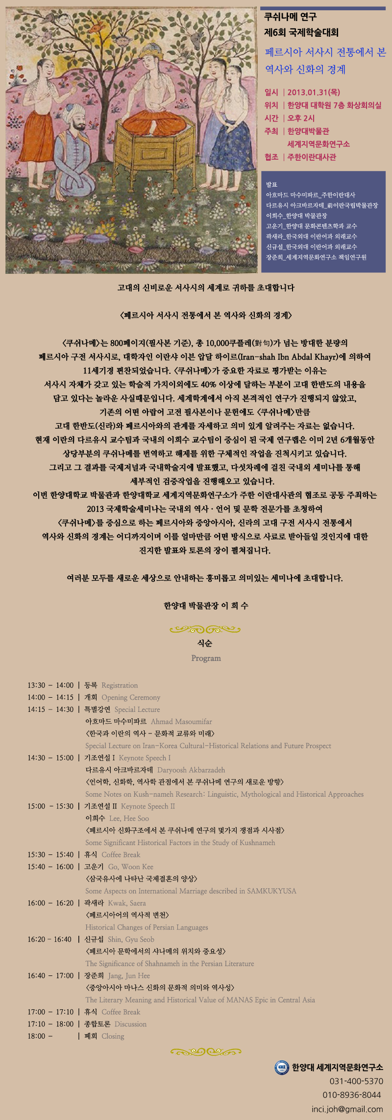 쿠쉬나메 연구 제6회 국제학술대회 : 페르시아 서사시 전통에서 본 역사와 신화의 경계