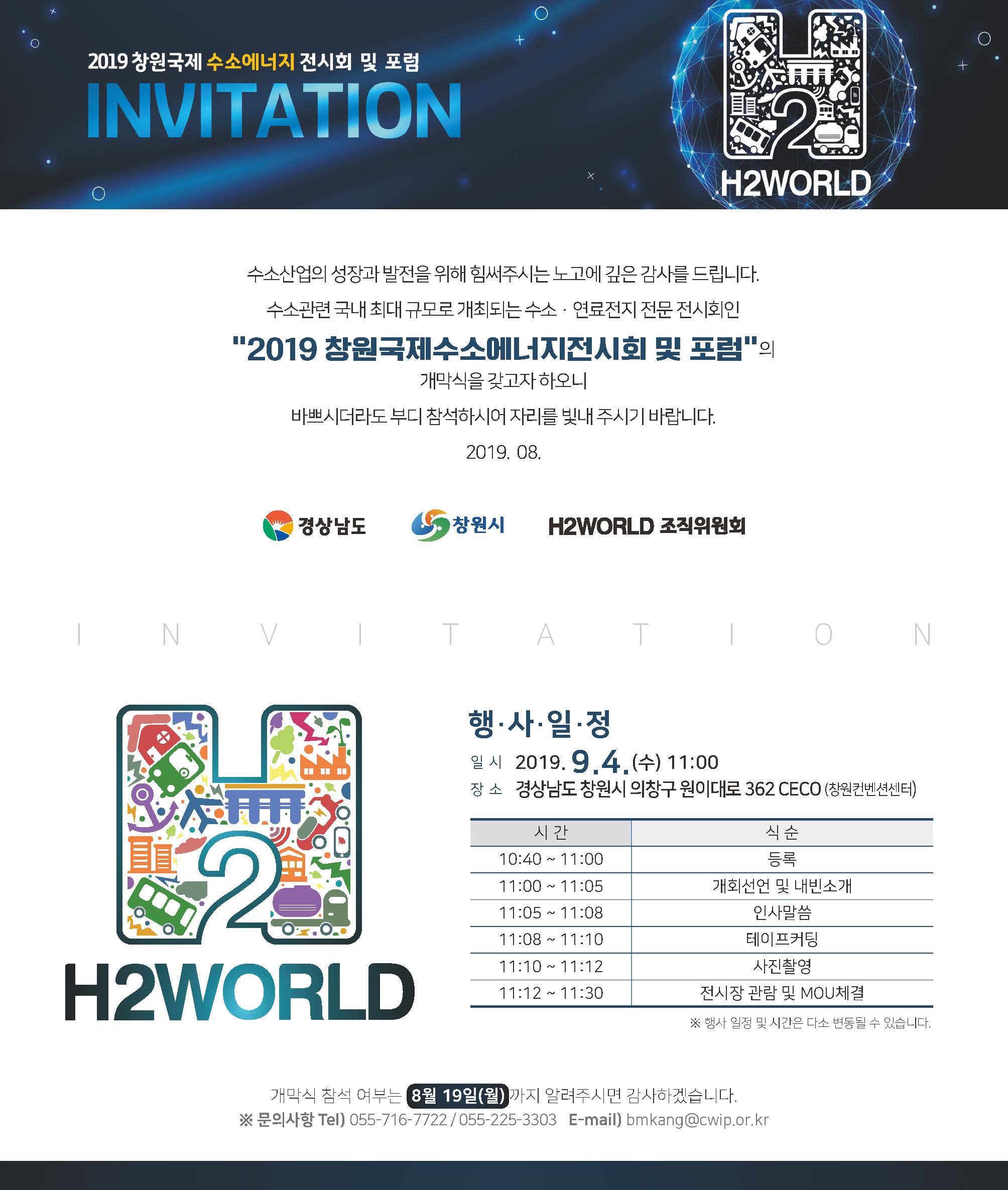 [H2WORLD] 창원국제수소에너지전시 및 포럼(H2WORLD 2019) 개최 안내