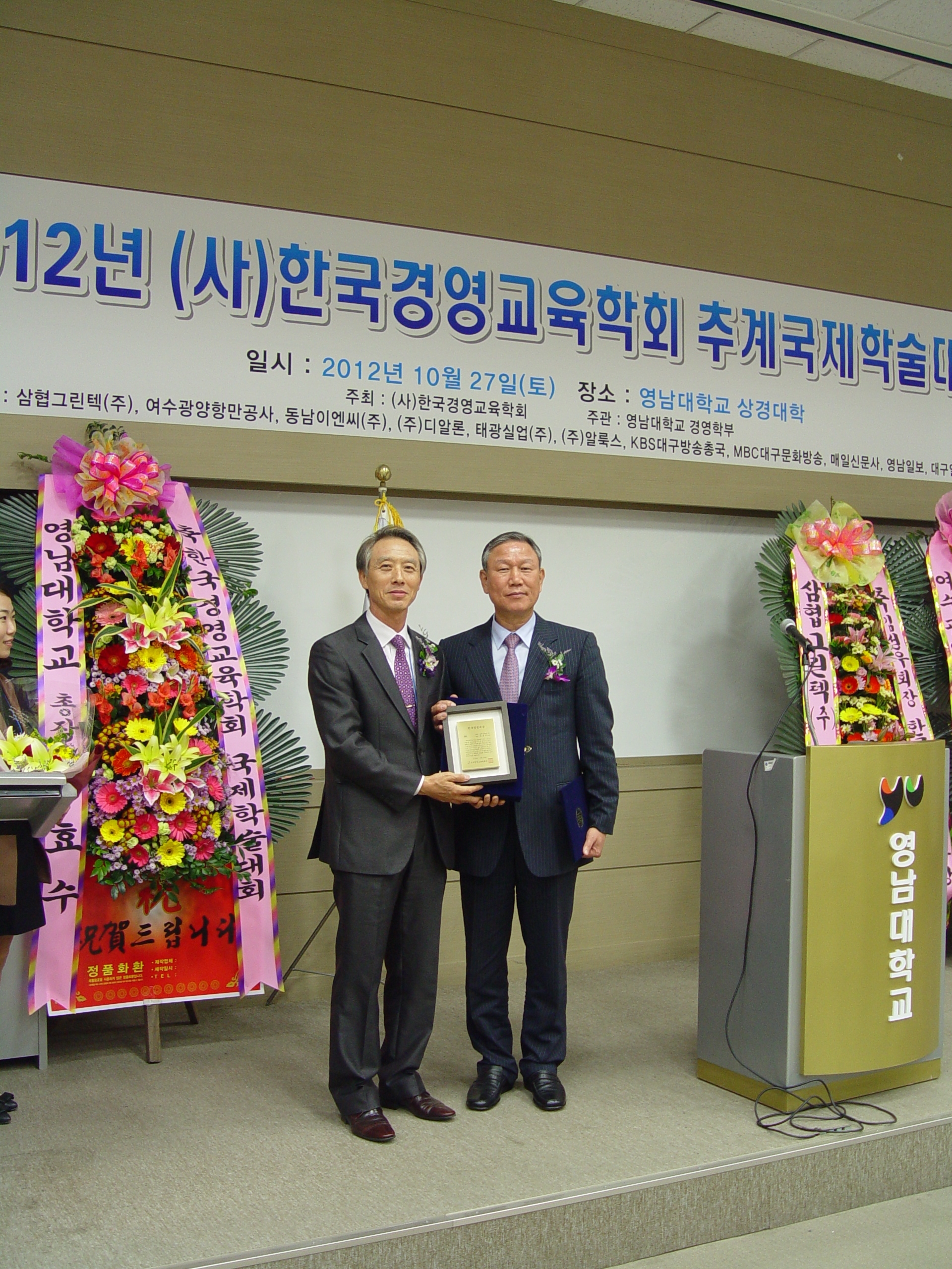 삼협그린텍 김성우 회장, 한국경영교육학회에서 경영대상 수상 http://newswire.seoul.co.kr/newsRead.php?no=660506 (진주=뉴스와이어) 2012년 10월 30일 -- 삼협그린텍 주식회사(경남 김해)의 김성우 회장은 2012년 10월 27일 영남대학교에서 개최한 한국경영교육학회(회장 허익구, 경남과학기술대학교 교수) 추계국제학술대회에서 학회가 수여하는 최고의 영예인 ‘한국경영대상’을 수상했다. 김성우회장은 폐자원을 대체에너지로 생산하는 특수한 저탄소 녹색기술로 1996년 삼협그린텍(주)를 설립하여 자원개발을 획기적으로 선도해온 공로를 인정받았다. 또한 김성우회장은 경상남도 도의원으로서 김해시 수질개선대책협의회와 경남 람사르협약 당사국총회유치위원회 위원으로 활동한 경력을 인정받았으며 현재도 김해 경제환경포럼 고문, 환경부 차세대 핵심기술사업 개발사업 심의위원, 환경부 생태복원사업단 자문위원 등의 활동을 통하여 지속적으로 지역발전에 이바지하는 공로와가 크다고 학회측은 평가하고 있다. 특히 경상대학교의 겸임교수로서 산업실무에서의 경험을 후학들에게 전수하고자 하는 노력은 학회회원들로부터 크게 관심과 주목을 받았다. 허익구 학회장에 의하면 김성우회장은 과거와 현재의 경력도 훌륭하지만 미래의 활동이 더욱 기대되는 기업인으로 지역사회를 위해 큰 활동을 할 것을 기대한다고 덧붙였다. 김성우 회장은 수상소감에서 녹색성장을 위해 ‘폐기물을 자원으로’라는 회사의 슬로건에 손색이 없도록 사회에 기여하는 기업인이 되겠다는 다짐과 함께 한국경영교육에 힘이 될 수 있는 일이 있다면 기꺼이 동참하겠다는 의사를 밝혀 학회회원들의 큰 박수를 받았다. 뉴스출처: 한국경영교육학회 홈페이지: http://www.kabe.or.kr 회사소개: 한국경영교육학회는 학교 및 사회 경영교육(경영, 회계 및 국제통상)에 관련되는 이론과 실무의 연구 및 발표로 한국 경영교육분야(경영, 회계 및 국제통상)의 발전을 기하고 경영분야의 전인적이고도 전문적인 인재의 교육과 육성을 통하여 한국 경제 발전에 기여함을 목적으로 합니다
