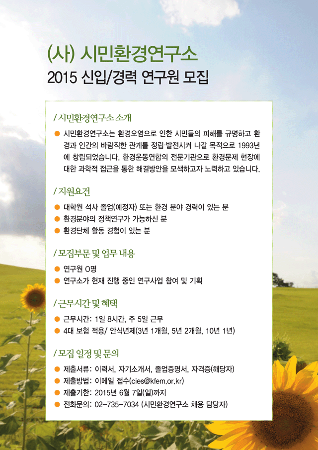 [구인] (사) 시민환경연구소 _신입/경력 연구원 모집