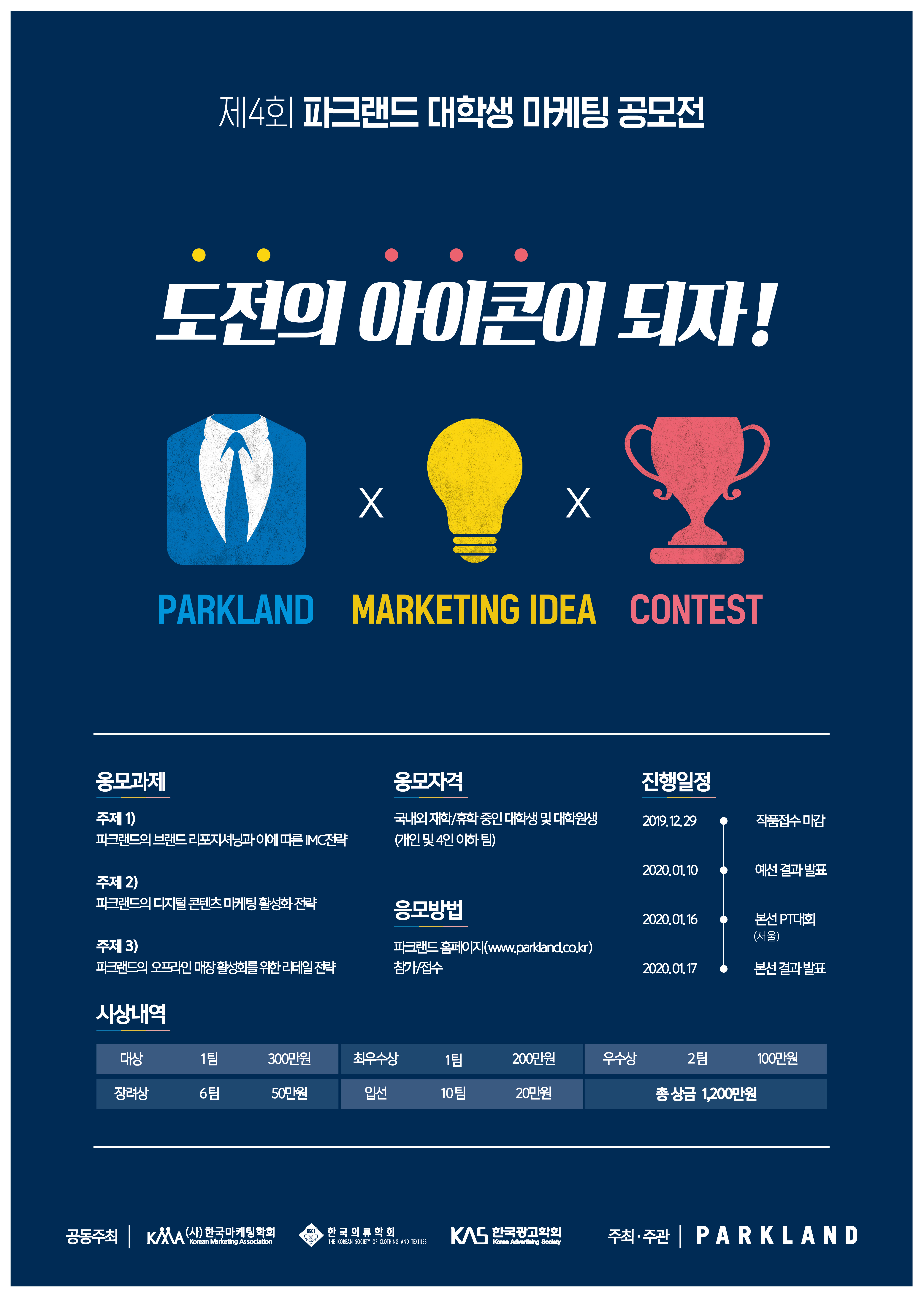 (사)한국마케팅학회와 (주)파크랜드의 공동주최로 전국 대학(원)생을 대상으로 '제4회 파크랜드 대학생 마케팅 공모전'을 개최합니다.