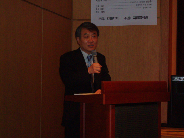 2005년 6월 2일 (목) 오후 2시부터 서울역사박물관 강당에서 있은 '국어상담소 운영을 위한 공개 토론회'에서 마무리를 하고 있는 국립국어원 김하수 부장의 모습. <찍은 이: 꿈돌이, 2005. 6. 2.>