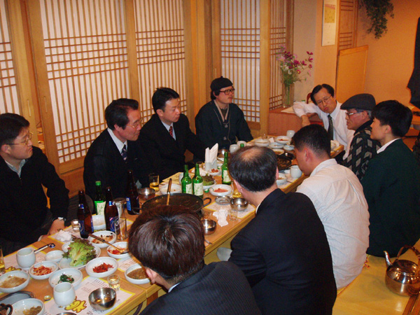 2005년 3월 7일 (월) 오후 5시에 한글 회관 강당에서 있은 공병우 박사 10주기 추모식이 끝난 뒤, 저녁을 함께하고 마지막까지 돌아가신 공 병우 박사님에 대한 얘기를 나누고 있는 추모식 참가자들의 모습입니다. 건너편 왼쪽에서 오른쪽으로 김 불꾼, 이 대로, 이 성우, 김 구룡, 이 봉원, 전 태수, 전 상도, 김 용묵, 최 용기, 김 두루한. (찍은 이: 꿈돌이, 20050307.)