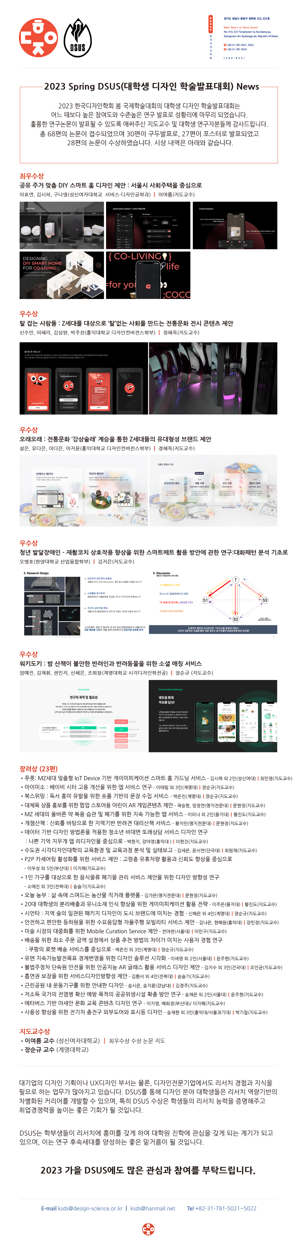 2023 봄 대학생 디자인 학술발표대회(DSUS) 수상 논문 안내