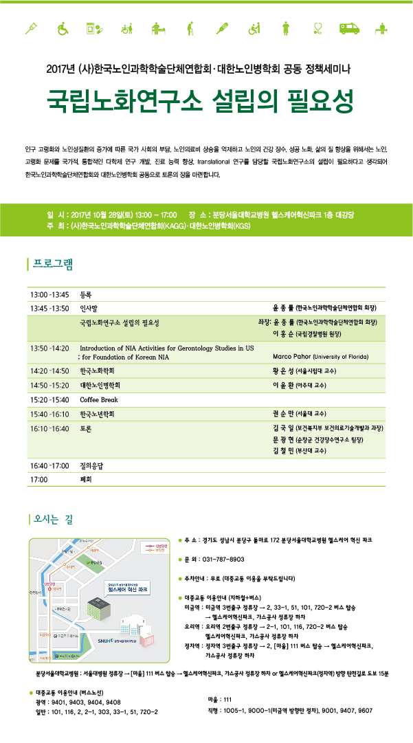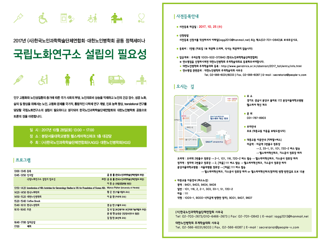 2017년 한국노인과학학술단체연합회, 대한노인병학회 공동 정책세미나 ‘국립노화연구소 설립의 필요성’ 주제로 개최