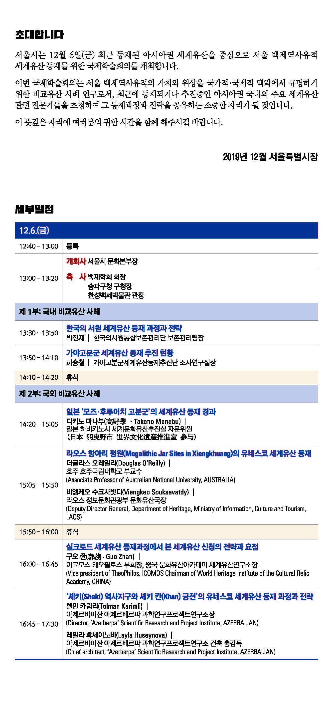 2019 서울 백제역사유적 국제학술회의 개최 안내