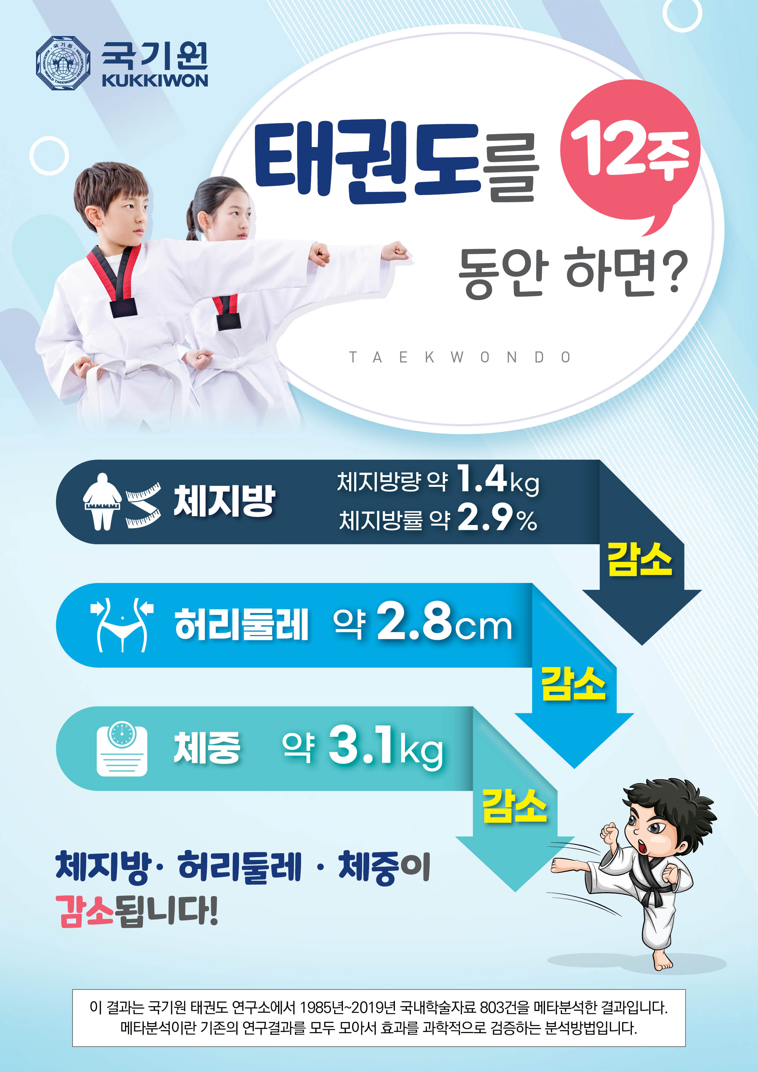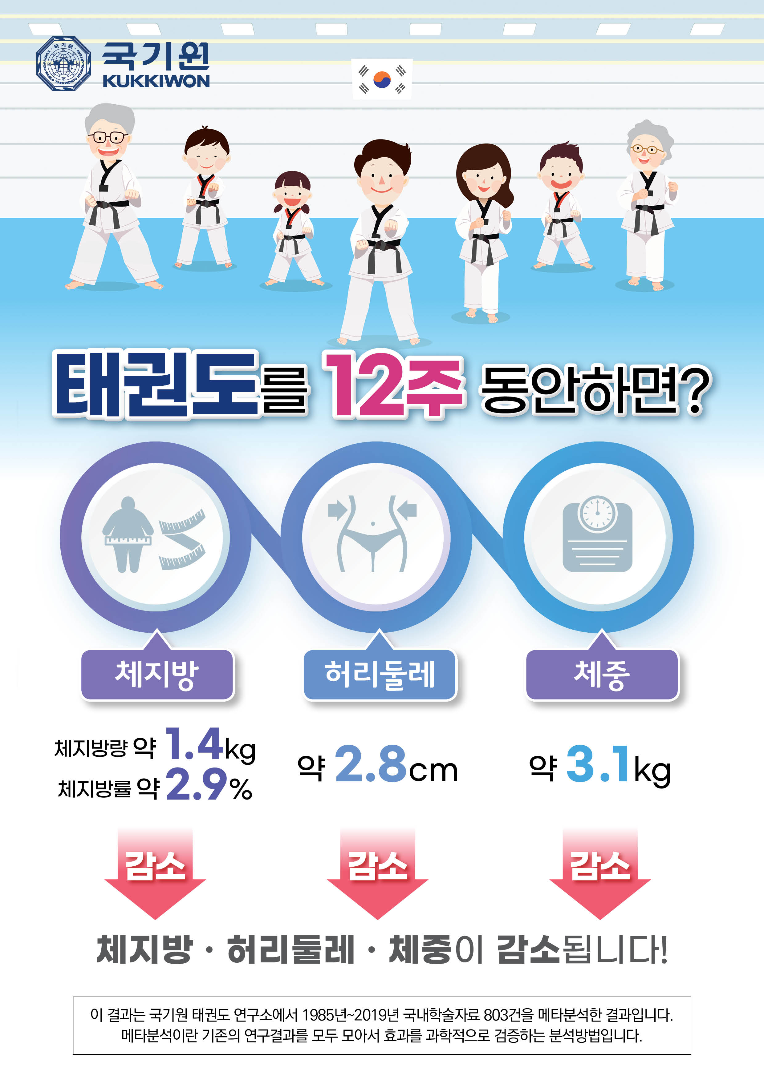 그 결과, 태권도 수련이 비만에 긍정적인 개선 효과를 가져온다는 명확한 결론을 확인했습니다.
