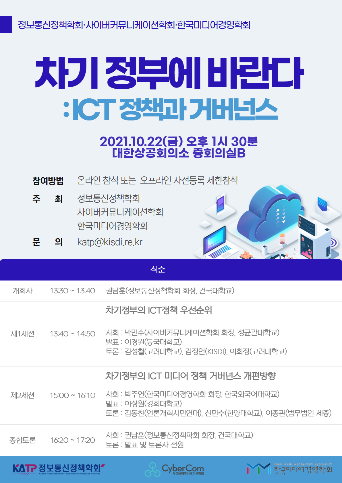 [공지] 2021년 10월 22일(금요일) ICT 3학회 공동 정책 토론회 "차기 정부에 바란다 : ICT 정책과 거버넌스" 개최