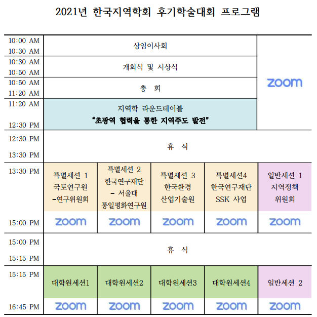 2021 후기학술대회 일정 및 프로그램 안내