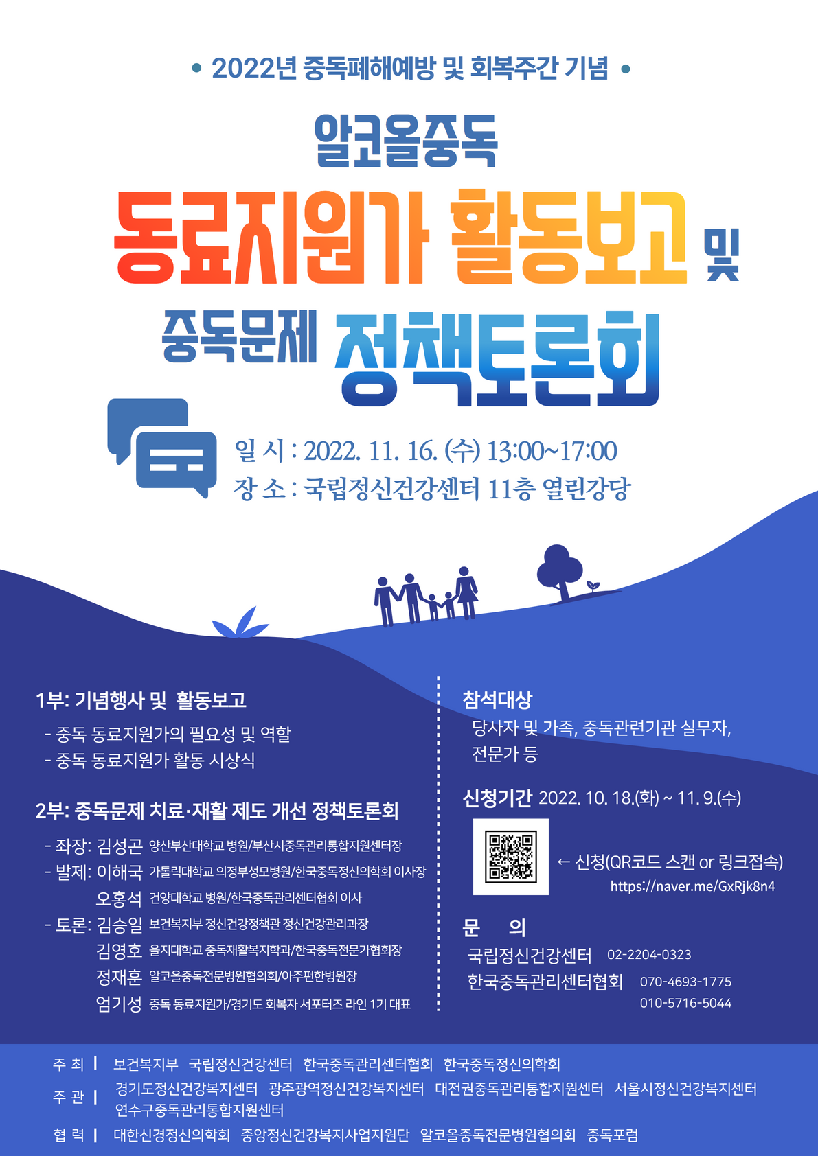-주 제: 알코올중독 동료지원가 활동보고 및 중독문제 치료·재활 제도 개선 정책토론회