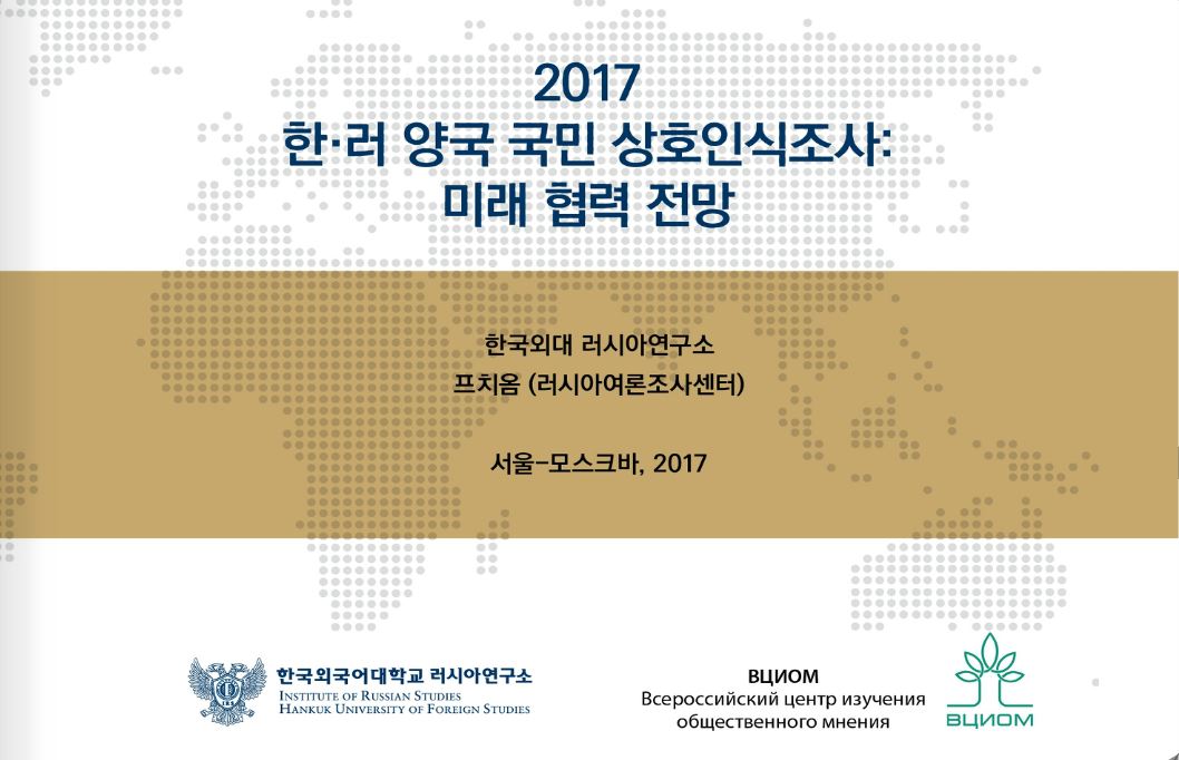 한국외국어대학교 러시아연구소는 2017년에도 러시아여론조사센터(프치옴)와 한국리서치에 의뢰해 한국과 러시아 양국 국민 상호인식 조사를 벌였다. 이 설문조사는 양국의 설문조사 전문 기관을 통해 같은 시기에 같은 내용으로 진행되는데, 2016년 시작되어 올해 2회째를 맞이했다. 2017년 설문조사는 인터넷과 전화로 러시아 국민 1,200명, 한국 국민 1,000명을 대상으로 이뤄졌다. 응답자 선정은 성별, 연령별, 교육 수준, 거주지에 따른 층위별, 무작위 방식에 따랐다.
