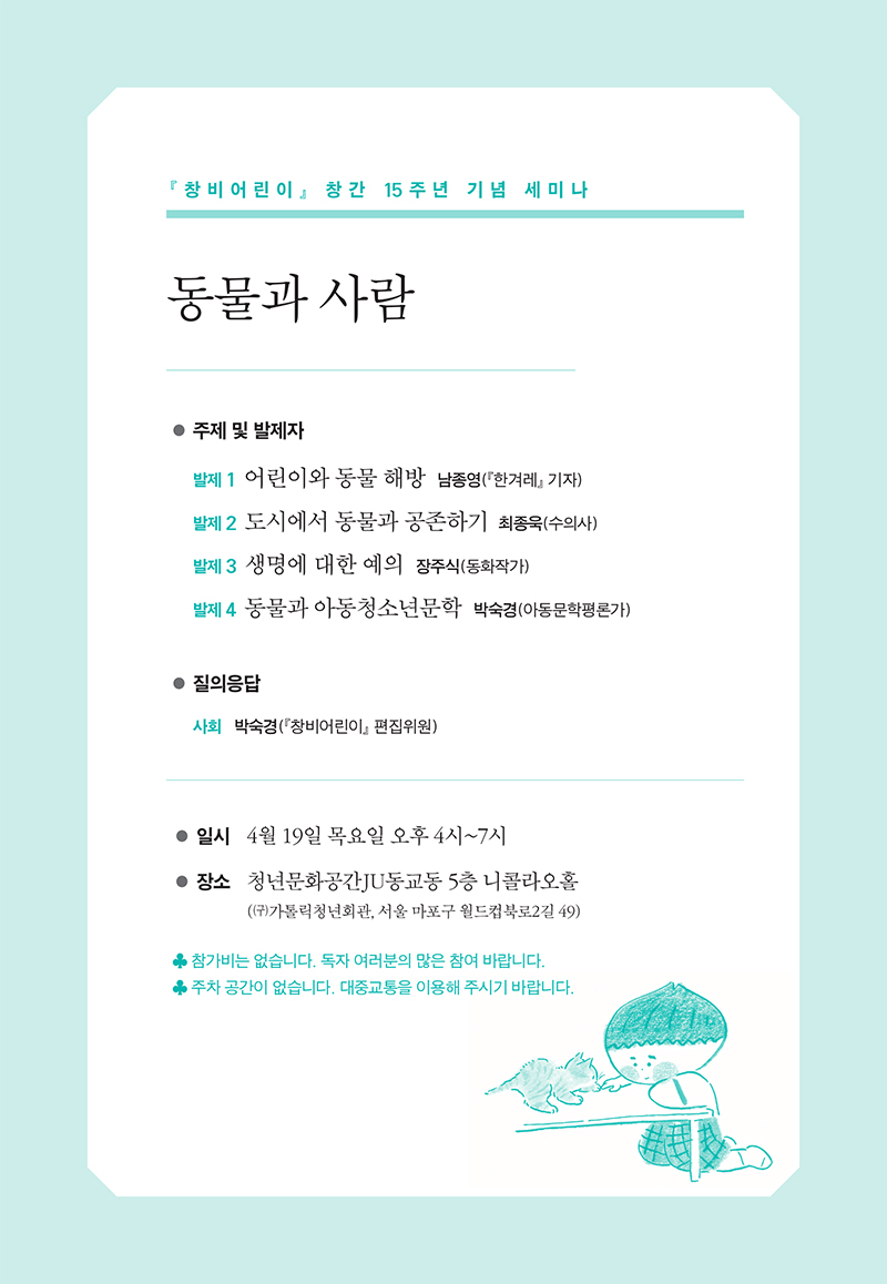 창비어린이 창간 15주년 세미나 [동물과 사람]에 초대합니다.
