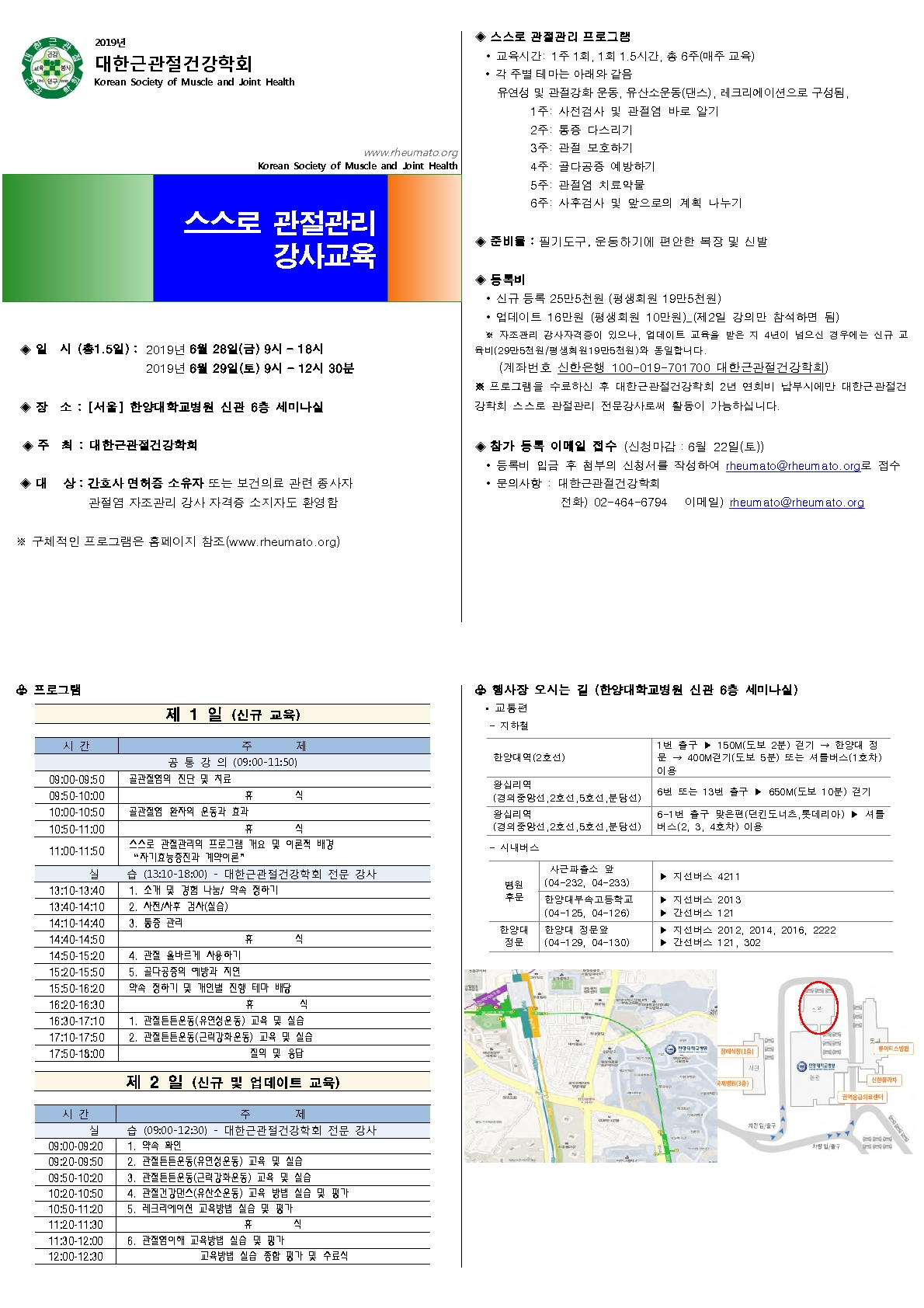 [2019년 6월 28일(금)~29일(토)] “스스로 관절관리” 강사교육 프로그램 안내