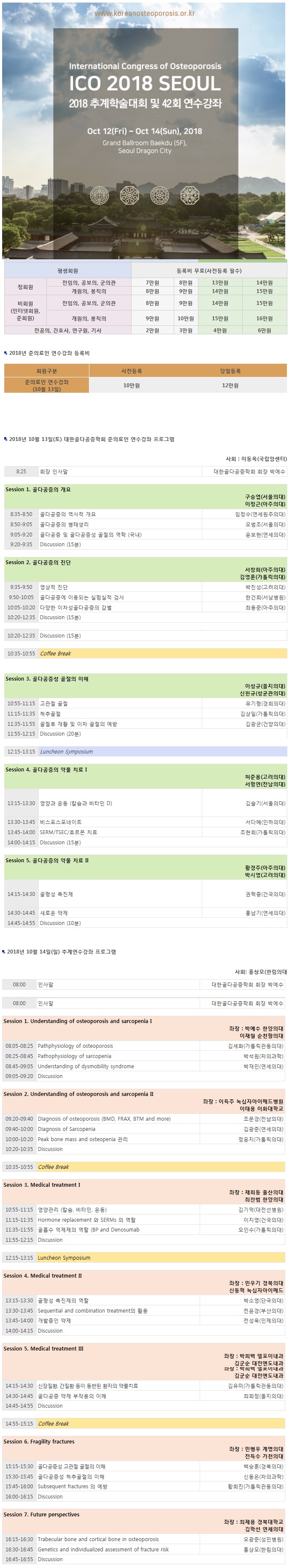 [홍보]대한골다공증학회 ICO 2018 SEOUL 추계학술대회 및 42회 추계연수강좌(10월13~14일,서울드래곤시