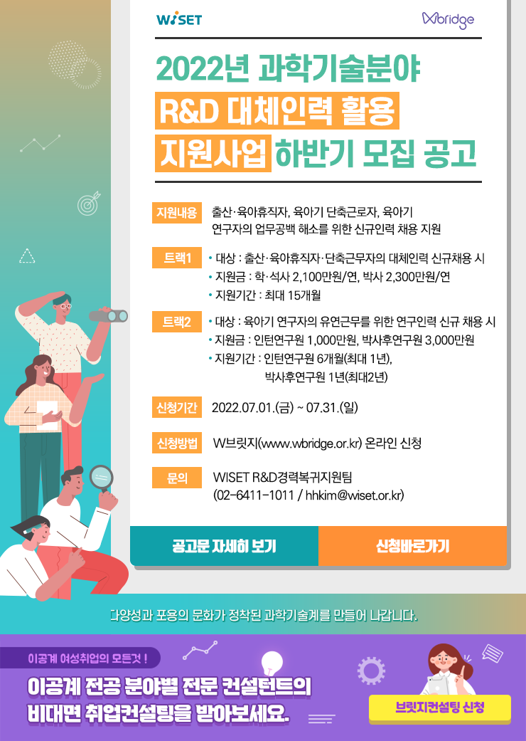 [WISET] 2022 과학기술분야 R&D 대체인력 활용 지원사업 홍보