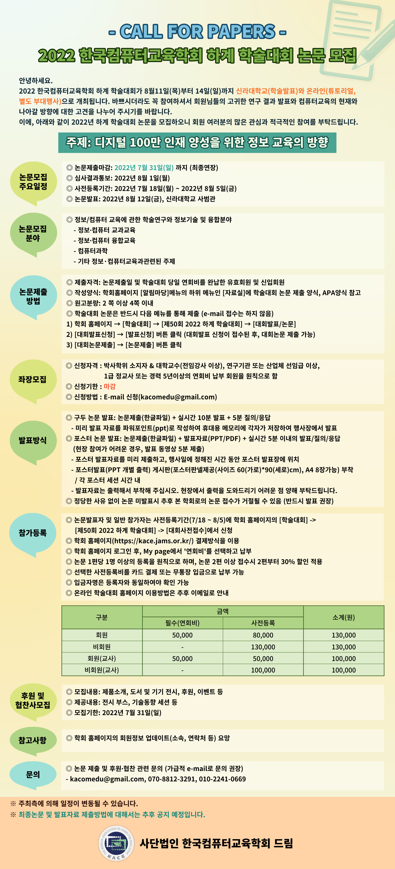 2022년도 한국컴퓨터교육학회 하계 학술대회 논문모집 최종연장 (~7/31까지)