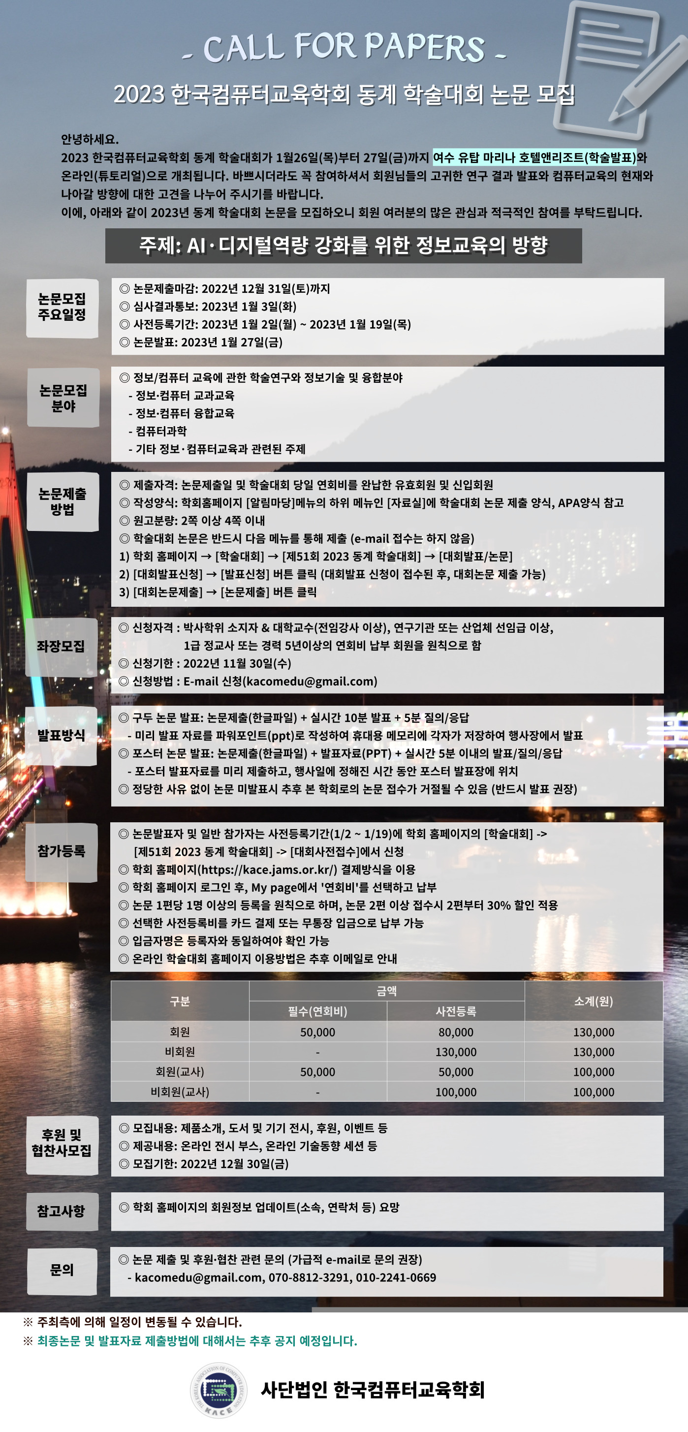 2023 한국컴퓨터교육학회 동계 학술대회 논문 모집
