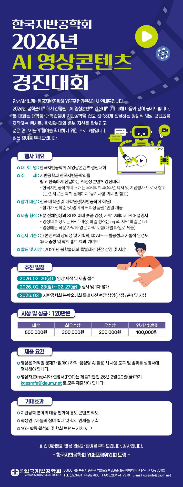 [한국지반공학회] 2026년 AI 영상콘텐츠 경진대회 (~3/13까지 제출)(연장)