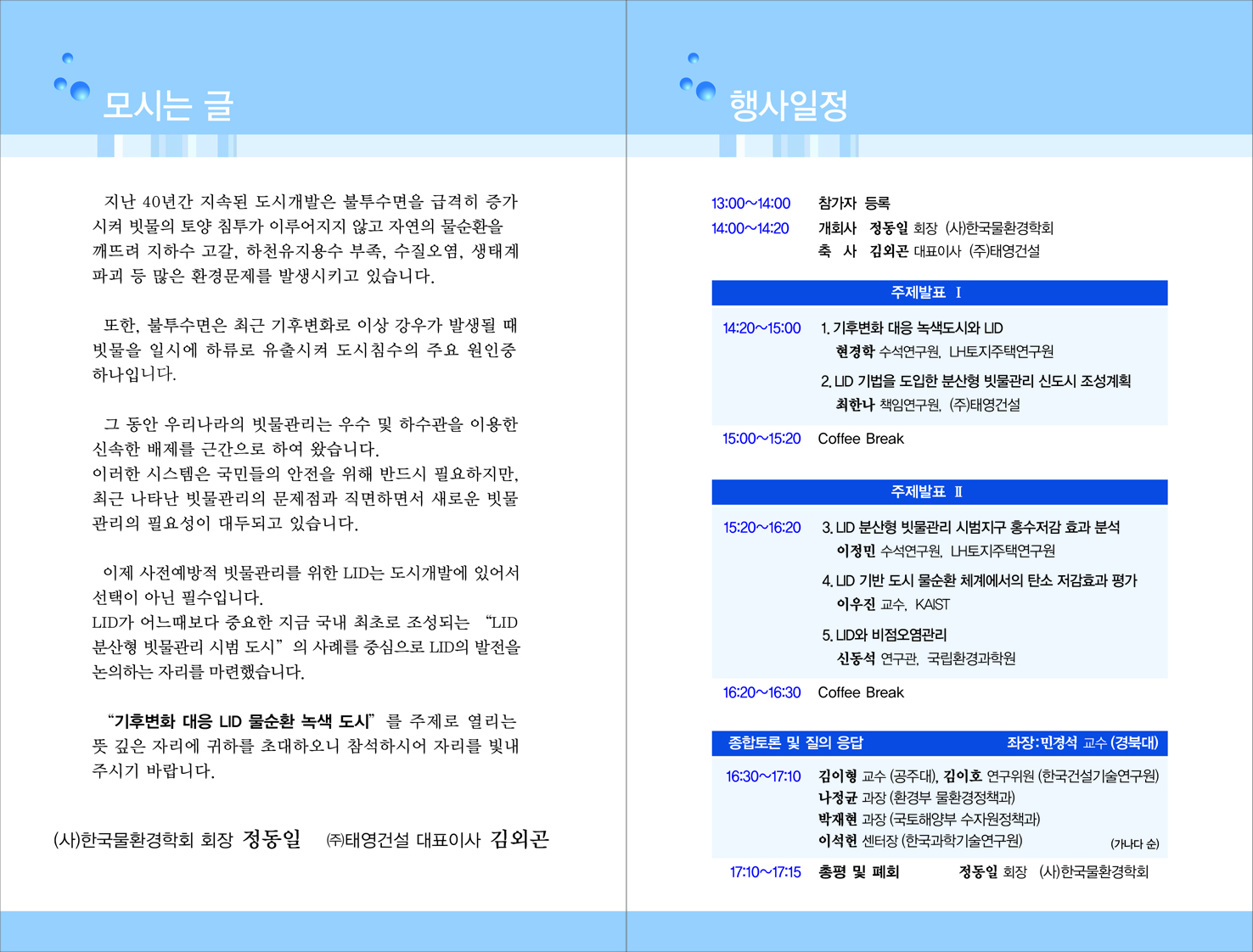 기후변화 대응 LID 물순환 녹색 도시 심포지움(한국물환경학회)