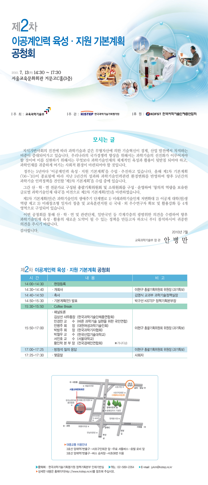 제2차 이공계인력 육성지원 기본계획 공청회 개최안내