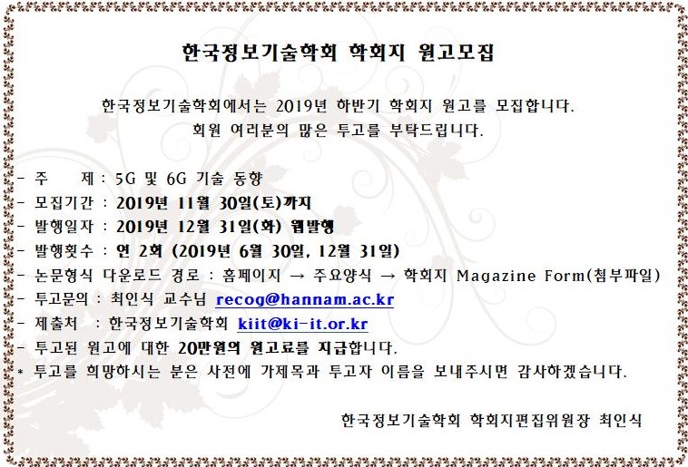 2019년 12월 학회지 원고 모집 공고